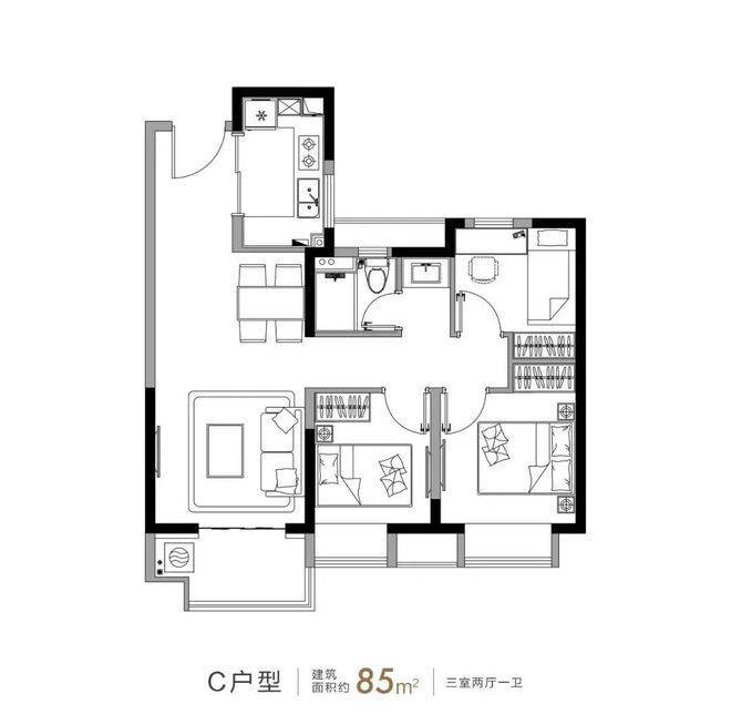 85平(三房两厅一卫):200-260万