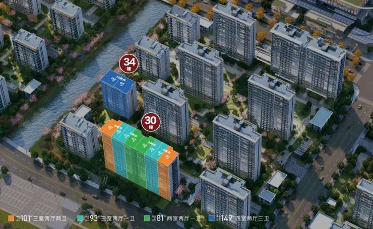 推售房源132套,其中,149㎡大户型位于34#、81-93-101㎡位于30#