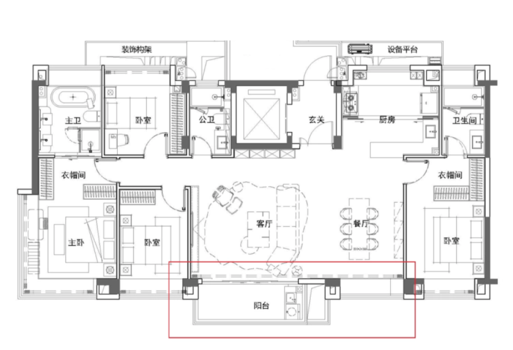 下图为边套户型过程稿,红框线范围内可能会对另外一个次卧的飘窗位置进行优化,优化为阳台,也就是南白两个次卧均带阳台!