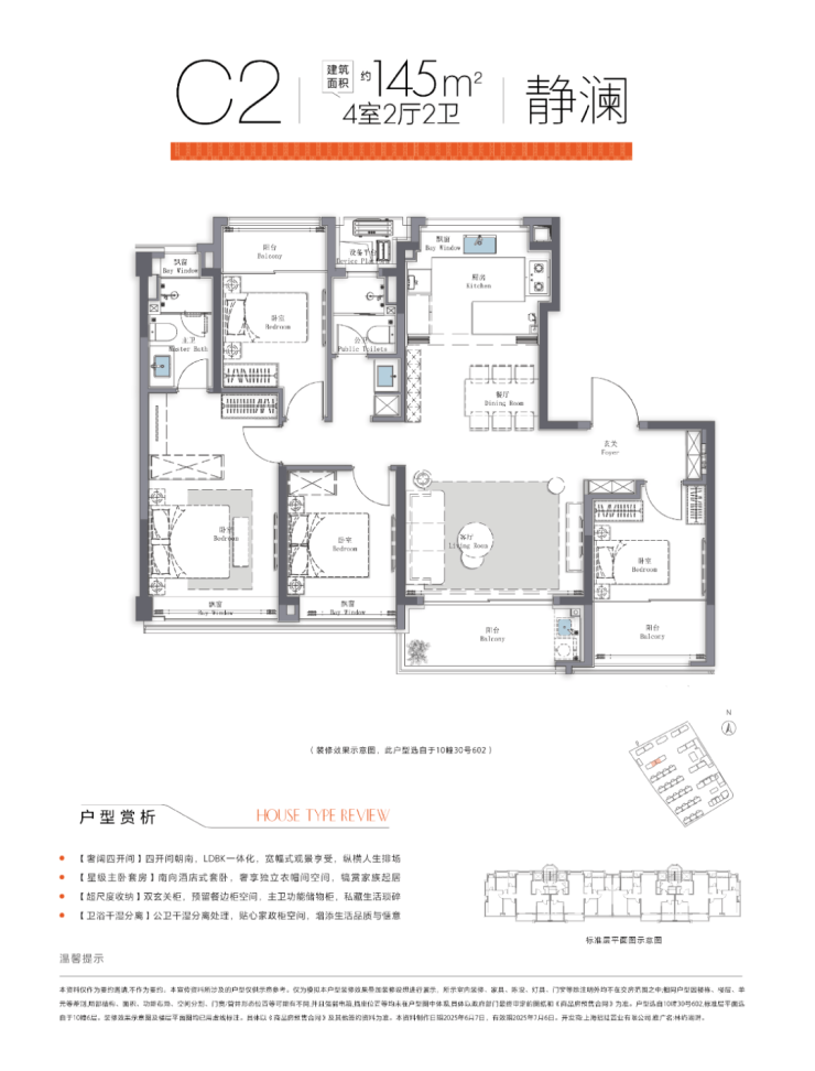 独立入户,横厅户型,同样为三开间朝南,南北通透,且厨房附赠飘窗,除客厅外,北房间也带阳台,边套户型主卧为270°飘窗!建面约145㎡4房2厅2卫,全两梯两户无连廊,共计约98套;