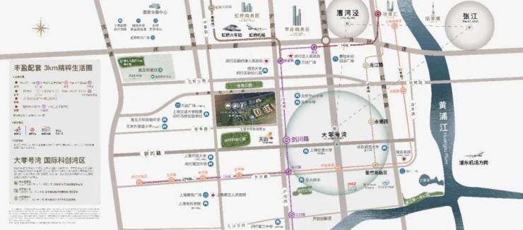 项目周边更簇拥着龙湖天街、万达广场等购物中心;医疗有上海第五人民医院等为健康保驾护航;更有闵行科创公园、金塔公园等生态公园环伺左右。