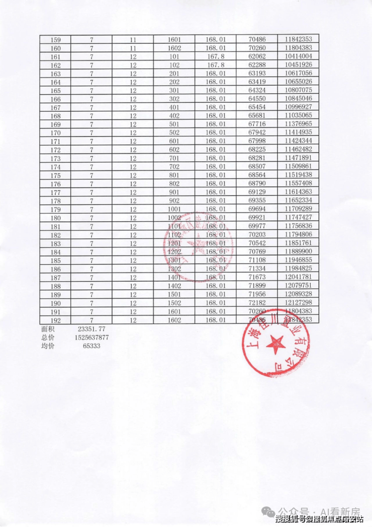 项目一房一价表▼