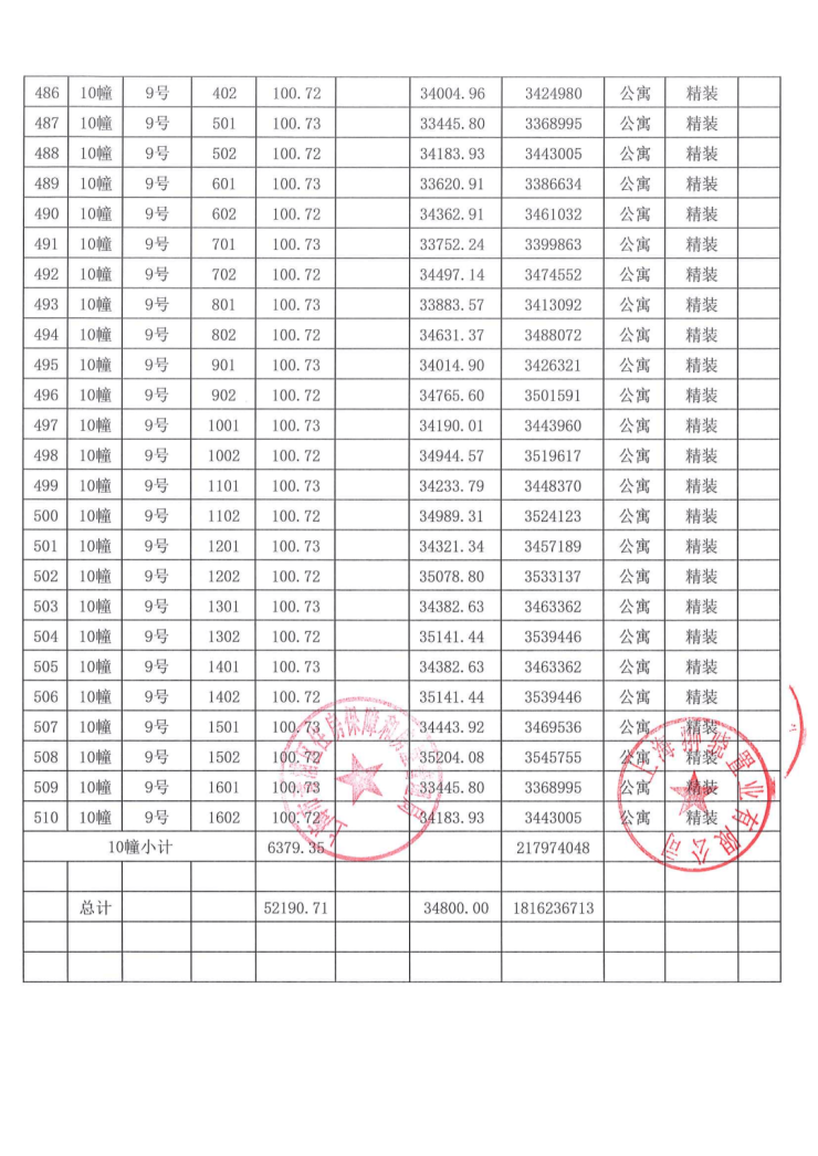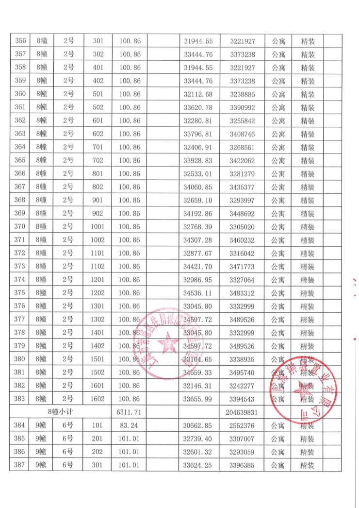 一房一价表