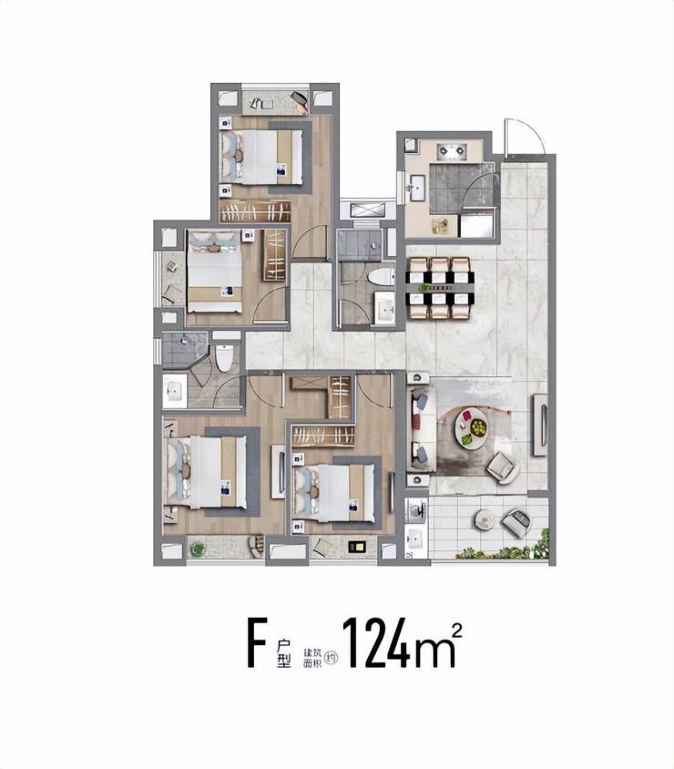 建面约124m²四房,市面常见的四房普遍要135平,这个约124平米户型功能性拉满,且控制了总价,给予更多小伙伴一步到位的机会。大名城映辰售楼处热线;400-8787-740☎