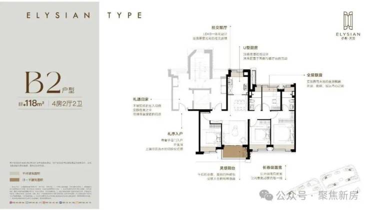 南北两个房间都做到270°飘窗,采光和景观面极其优秀。