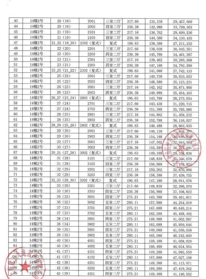 303平:4287-5123万(两梯一户)4号楼,总高16层小高层