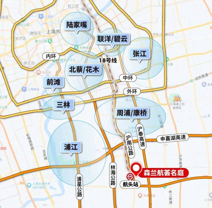 森兰航芸名庭预约热线☎:400-8080-420✅✅直线距离18号线航头站仅约500米,完全可以实现步行进站!进站后7站即达中环御桥、11站可达内环龙阳路、15站来到陆家嘴金融城昌邑路。