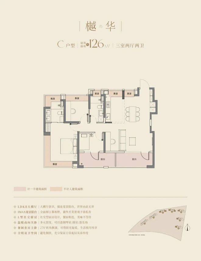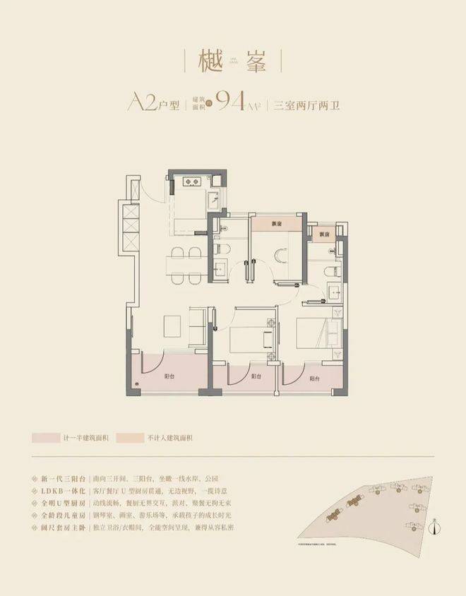 大华望樾售楼处电话:400-9699-334✨【官方认证】✅✅✅建面约94㎡高层户型居然做到了三阳台的配置,远远超过新规标准。