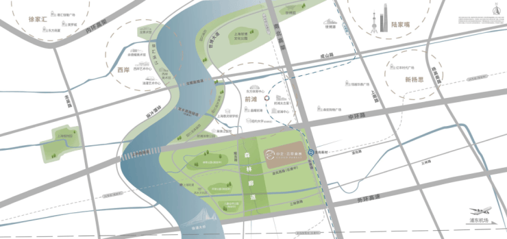 前滩南滨江:市里主导开发(上海地产集团),定位为三林楔形绿地,核心功能为生态宜居,板块内绿意盎然、宁静致远,是上海中心城区最生态的板块之一。
