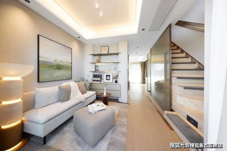 上海崇明东滩海上明月售楼处电话☎:400-8787-740(预约看房热线)楼梯区完全被几何占据,自然光恰到好处的平衡,进一步呼应着空间的心境,衔接了生活和居所。