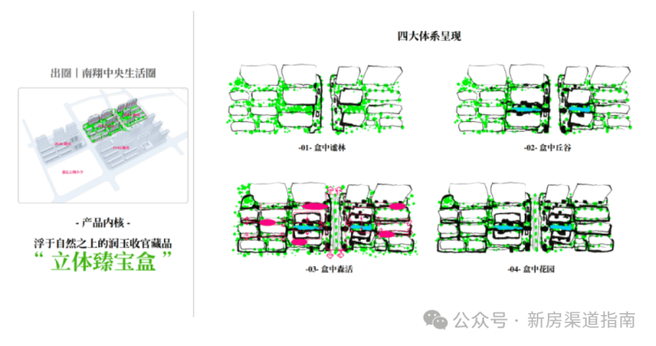 继续往里走,映入眼帘的是二期园林景观——绿野仙踪。它拥有5重立体园林、3大组团、7大森境花园,精心规划了盒中谧林、盒中丘谷、盒中花园、盒中森活等四大园林体系,仿佛一个蓝绿臻宝盒。