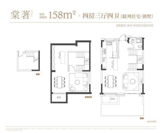叠墅:叠墅一共四层,分为上/下叠,上叠建筑面积约139㎡,下叠建筑面积约142㎡。