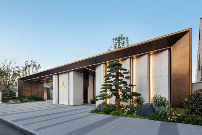 外立面上,采用素白色花岗岩石材,豪宅感点满。点缀建筑的造型线脚选用挺拔的深咖色铝板,整体风格营造一种江南特有的水墨意境。
