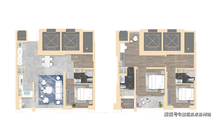 其中3#为超高层,北向可观小区绿化和苏河景观,高区可瞰三件套盛景。
