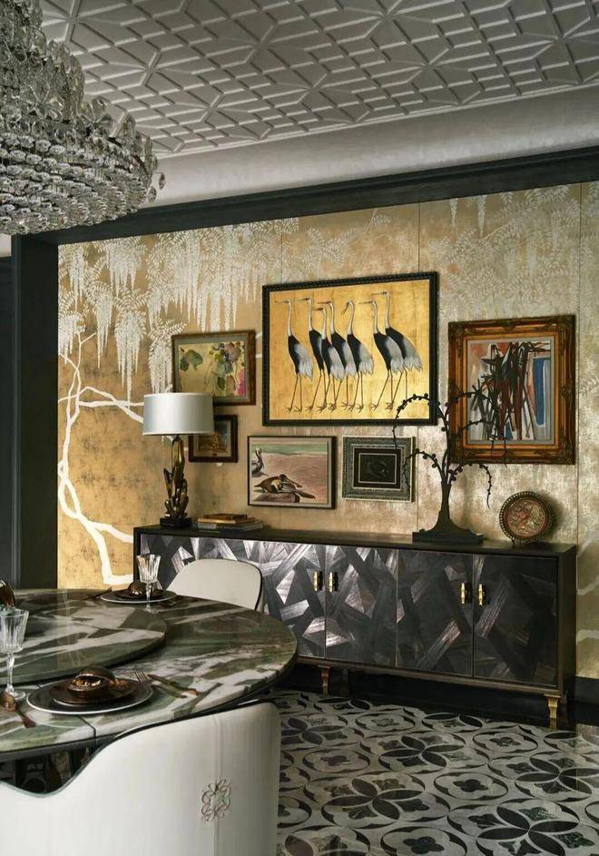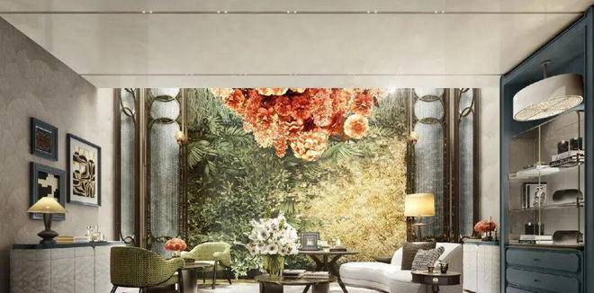 建筑面积约495㎡传家大宅,海派气质内外辉映;深色木饰面与柔和的刺绣主背景,框定空间层次格局,营造稳当厚重的氛围基调,法式留白的墙面与顶部造型,与原筑提取的典型拼花地砖相呼应,经典的精致与典雅,海派传家大宅的气度不言而明。
