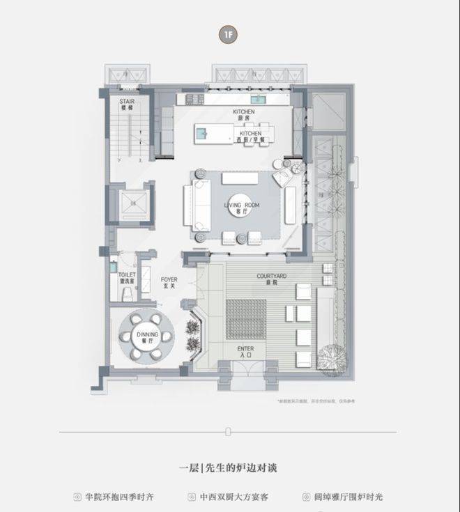 一层长辈套房设计,南向独立小庭院,莳花弄草,晨练太极自在四季