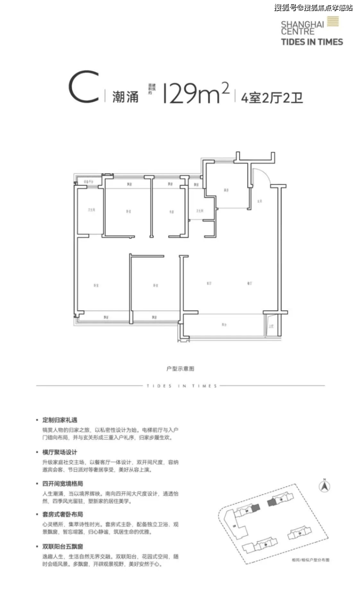 建面约129㎡的4房户型,在浦东非常少见,另外这也是曹路今年唯一一个4房户型,对于居住尺度有一定要求的改善朋友千万不要错过。