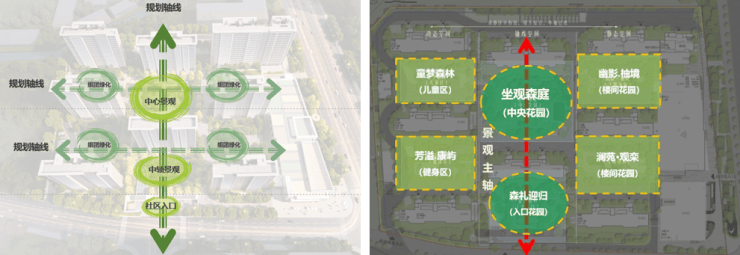 整体理念:打造有活力、有仪式、有秩序、动静分区的精品生态社区。采取经典的中轴对称设计手法,尊贵礼序的三进式院落归家空间,结合中心绿化及景观带打造出独特的仪式感和尊崇感。