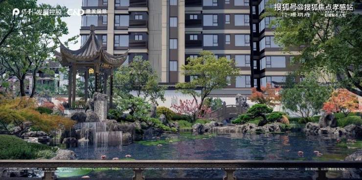 社区配置亭台楼阁、小桥流水、中式屏风戏台