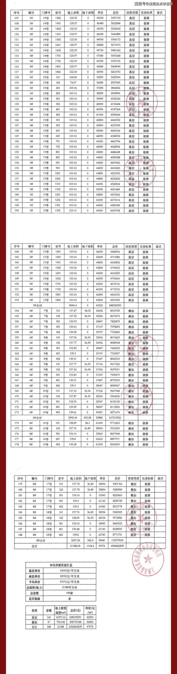总可售套数:188套
