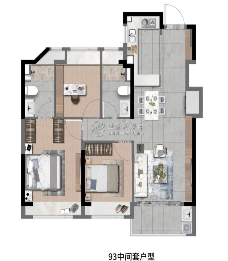 高层建面约93㎡3房2厅2卫