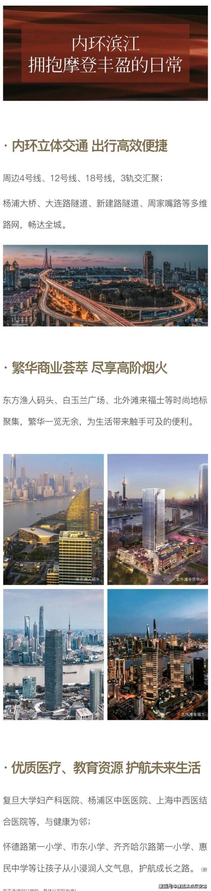 自驾出行也很有优势,附近有杨浦大桥(内环)、大连路隧道、新建路隧道直达浦东,前往市中心的话,周家嘴路直连北横通道。
