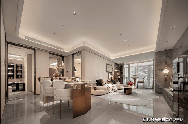 项目首层通过硬朗直线呼应柔和曲线勾勒,辅以温润石材与古铜色金属线条融合,打造东西方美学共融的艺术藏品
