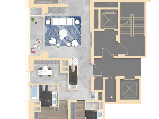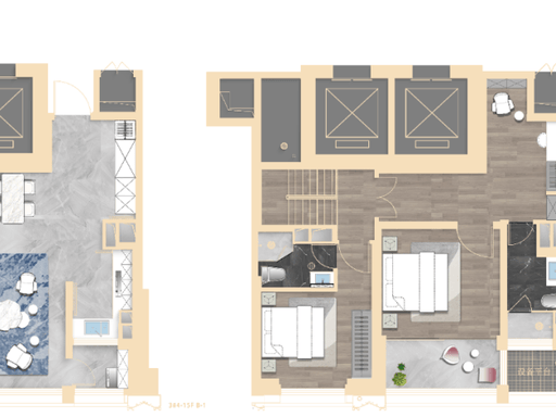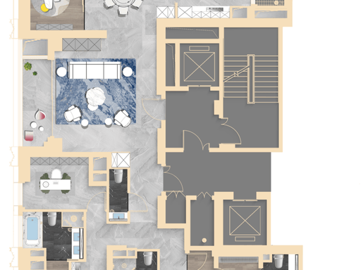 303㎡ 四房:2 梯 1 户,私享梯厅,5 开间朝南,双卧套房,主卧四分离卫浴。
