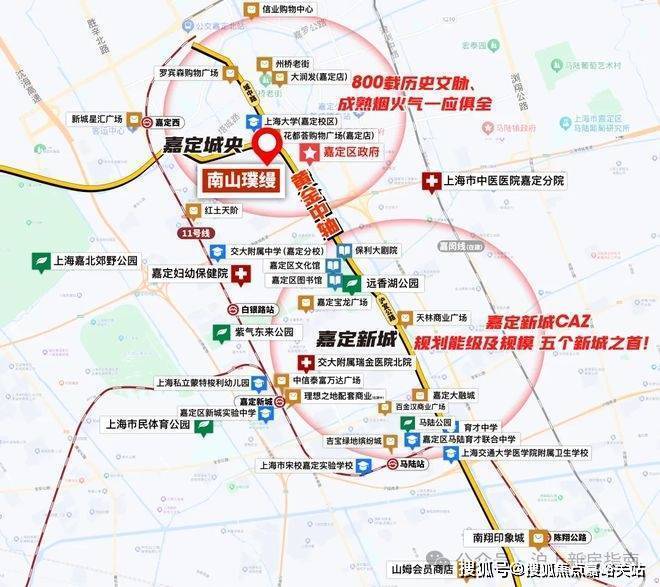 特北接嘉定老城 800 年烟火生活圈,步行可达州桥老街、花都荟、盒马鲜生,成熟配套触手可及;