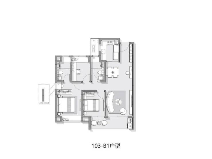 主力约103㎡3房2卫,经典LDKB餐客厨阳一体化贯通中轴的设计,极力减少过道、转角等空间浪费,撑起气场的同时,也提升了户型的实用性、家庭成员的互动性和场景感。