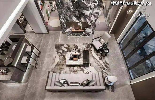 极简的线条强调出空间的自然与纯粹,巨幅落地玻璃将室内外的景致互相交融,作为业主专享的休憩与社交空间,可一边欣赏中央水院美景,一边与至交好友对坐倾谈,别有一番韵味。