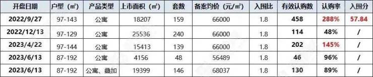 各批次具体开盘认购情况见下表: