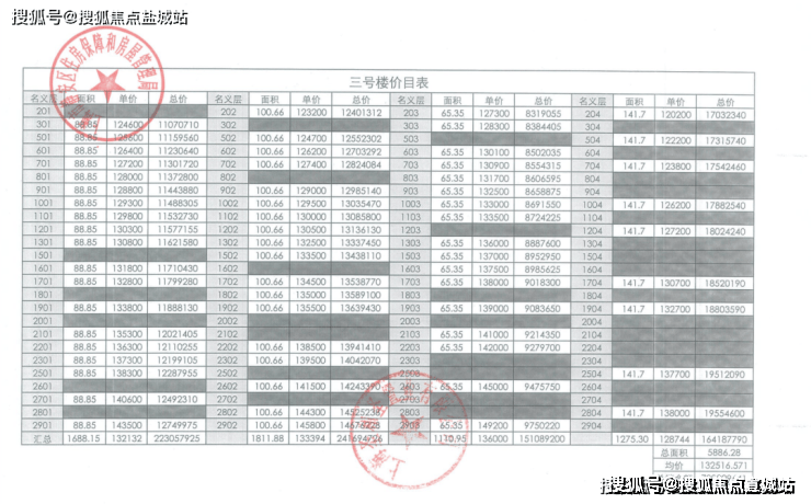 一房一价表如下