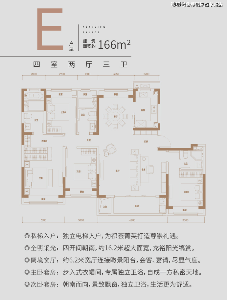 【佳运·瑞璟湾】售楼处电话:400-885-5420✨✨建面约166㎡奢境户型,南向四开间面宽可达约16.2m,约6.2米宽