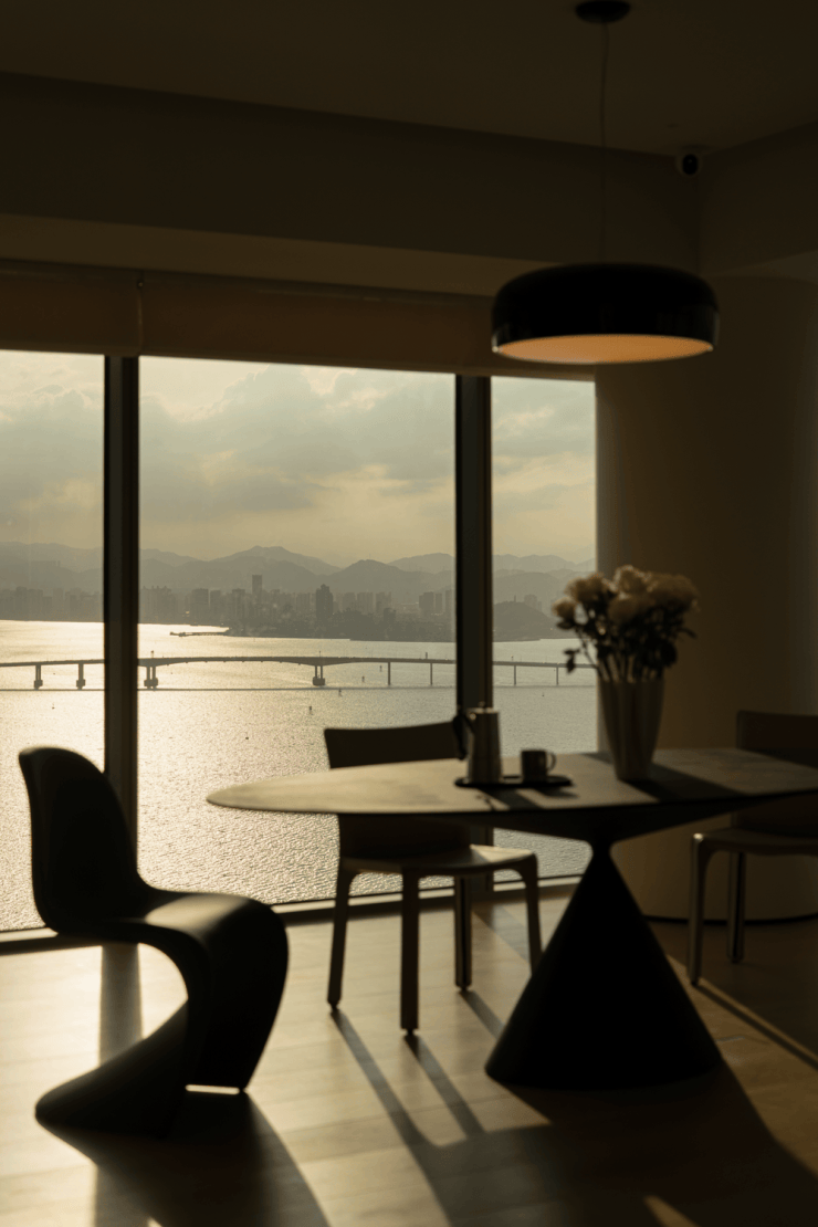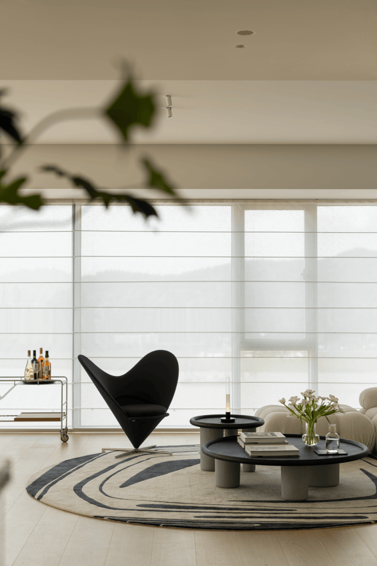 这是为美术生打造的270度环幕江景大平层,高楼层赋予的辽阔视野,江景成为空间的天然背景。