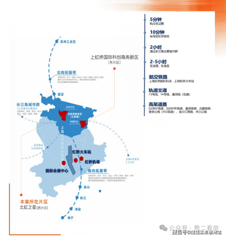 北虹桥作为虹桥国际开放枢纽的创新承载区,兼具“长三角,大虹桥”的双重区位优势,将承载虹桥国际中央商务区主导功能,成为链接辐射长三角的创新经济集聚区、中央商务配套区和高品质国际化社区