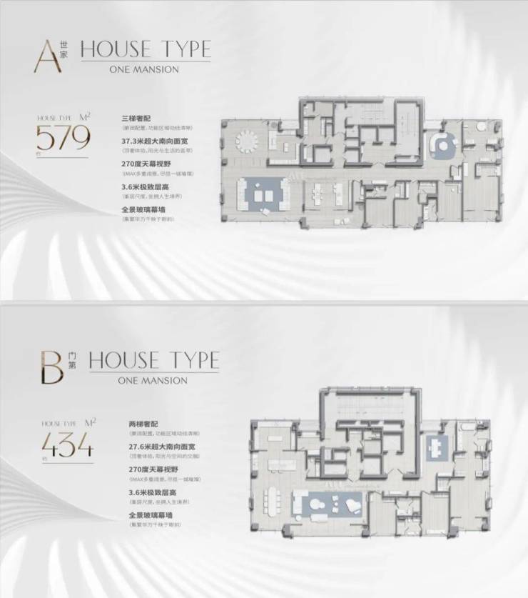 2号楼434㎡户型一层一户2部电梯
