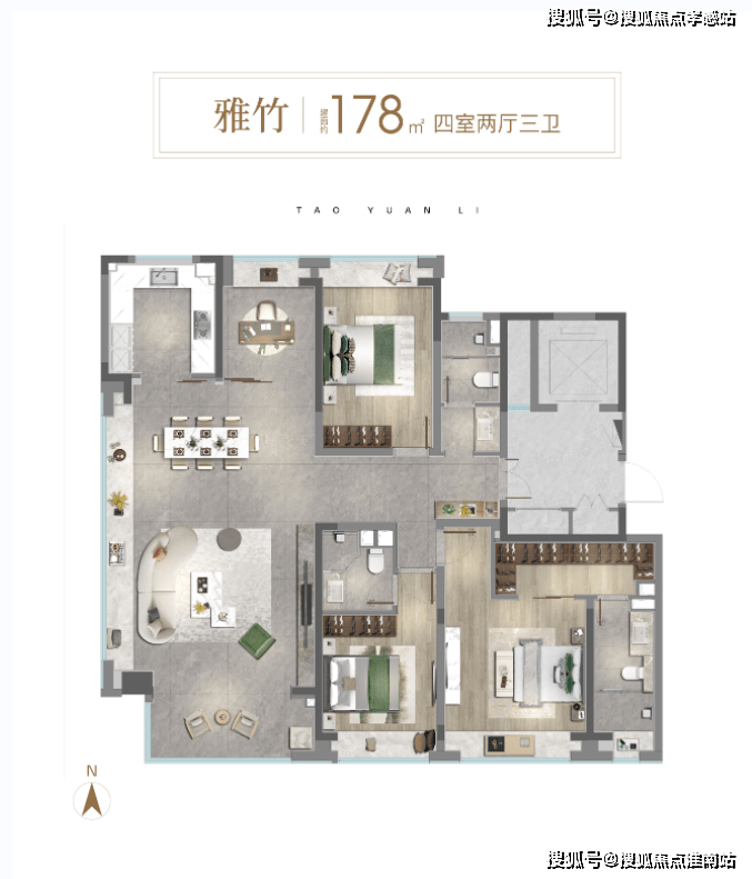 建面约178㎡四房户型▼