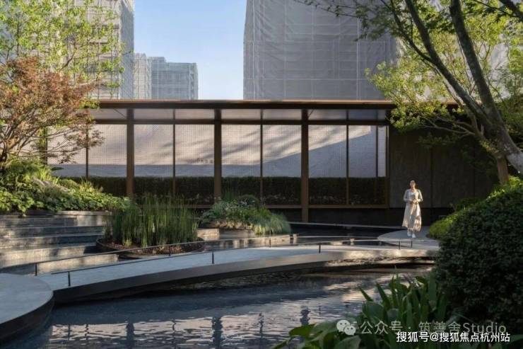 穿过大堂,步入迎宾水院的怀抱,三重空间的礼仪序列,层层递进,营造出回家的庄重仪式感。跨越寓意礼仪的拱桥,如同穿越波纹荡漾的时空,将古典园林的造景艺术与现代设计理念巧妙融合,呈现东方美学的精致内涵。在这里,人与自然、传统与现代仿佛携手共舞,和谐共鸣,营造出一种宁静深远的意境。
