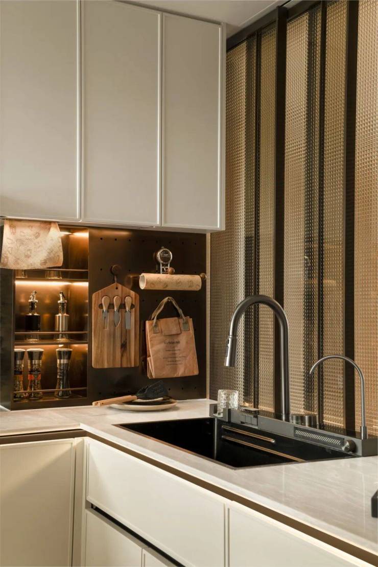 将烹饪区设置低于水槽区,恰好契合烹饪时手臂自然下垂的舒适角度,让烹饪的动作更行云流水,减轻家务带来的疲劳感