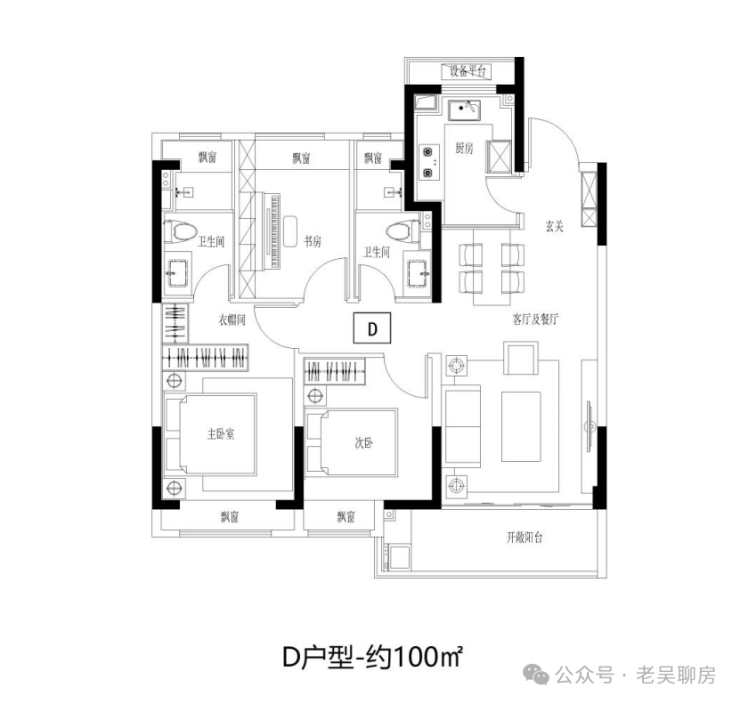 建面约100㎡3房2卫,阳光三房,同等面积更多功能;宽幅南向观景阳台,把居住变成风景;步入式衣帽间,给予生活更多从容。