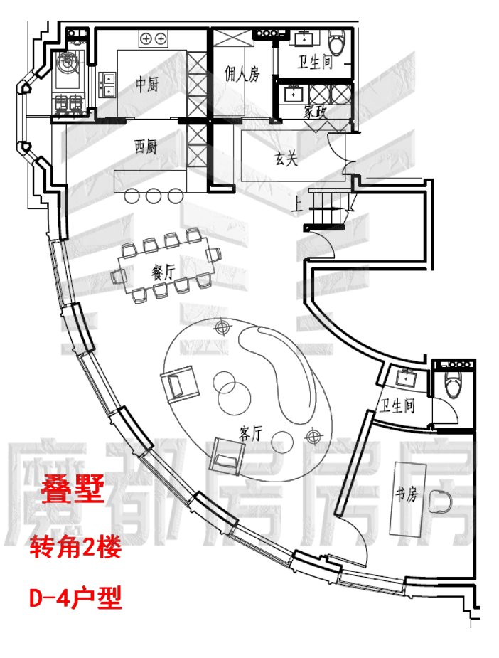 叠加别墅的2-3-4楼D-4特殊户型约433㎡。