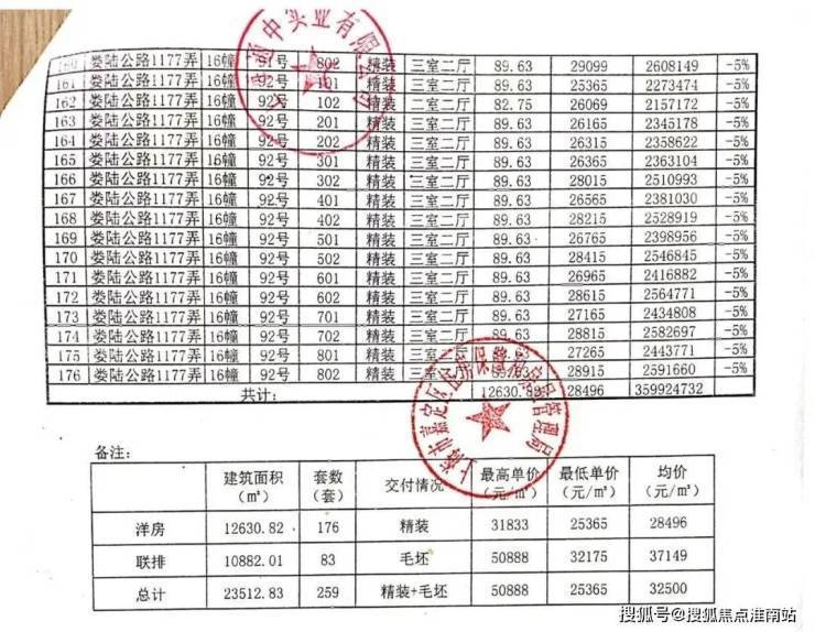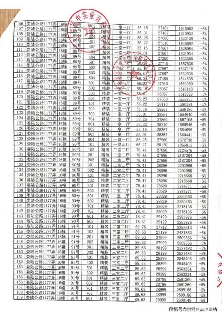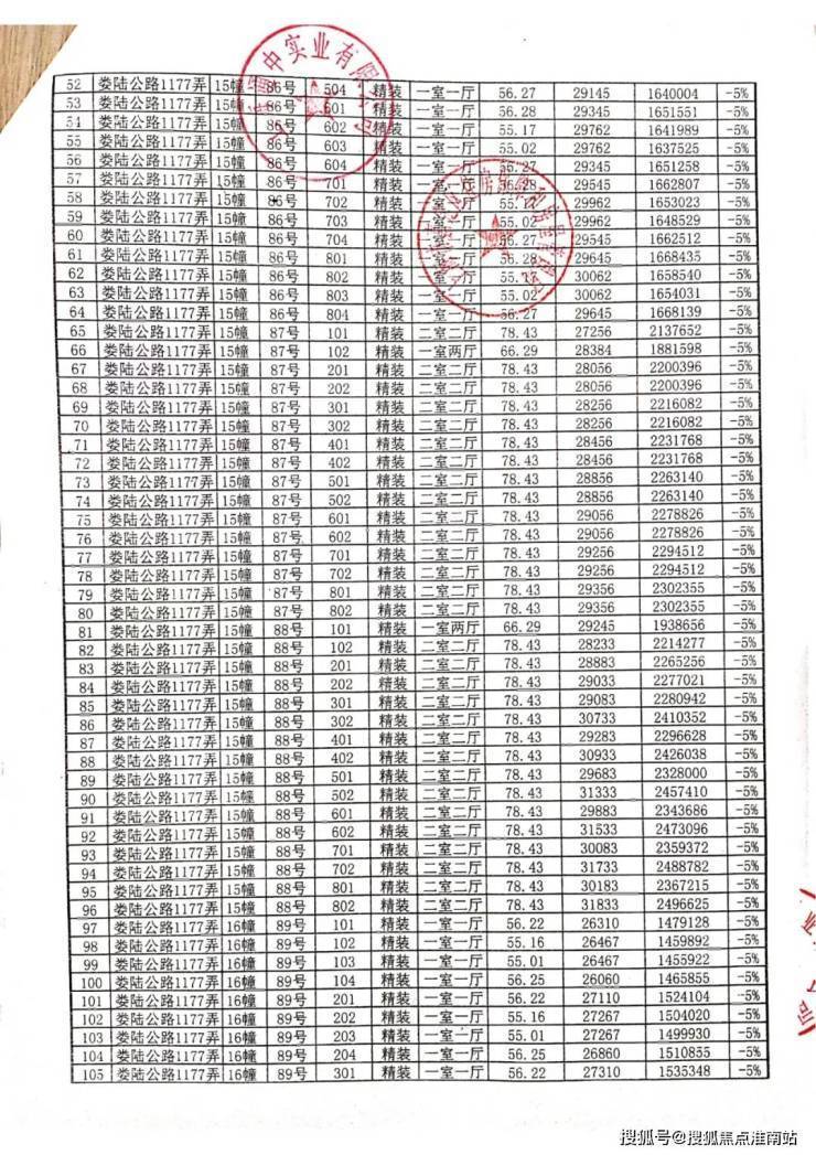 一房一价表:
