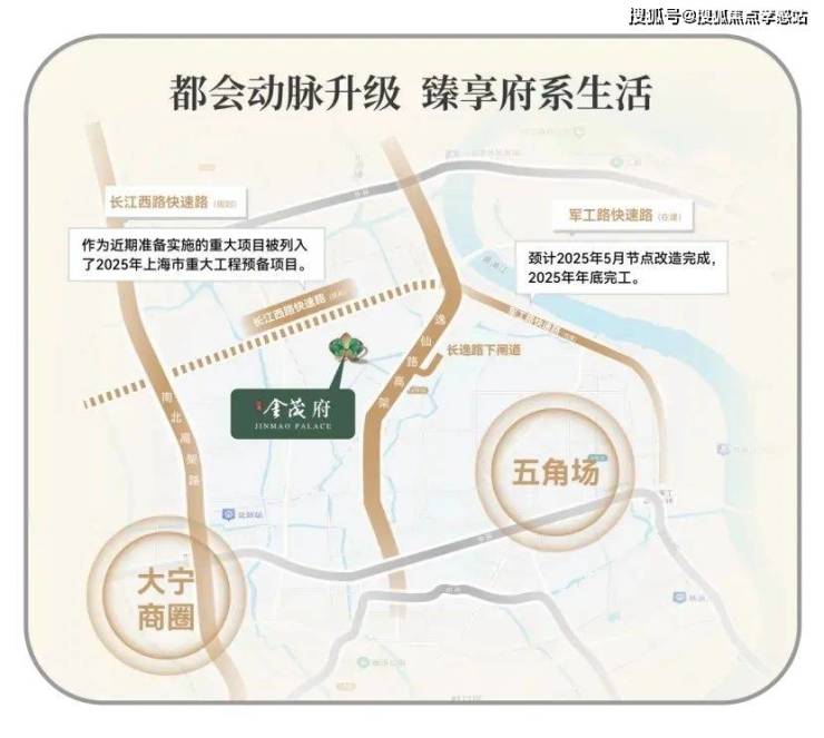 在城市交通路网方面,江湾金茂府售楼处电话:400-885-5420✨✨同样优势显著。周边拥享中环高架、长江西路快速路、外环高速三横主轴,以及逸仙路高架、南北高架两纵接驳 。