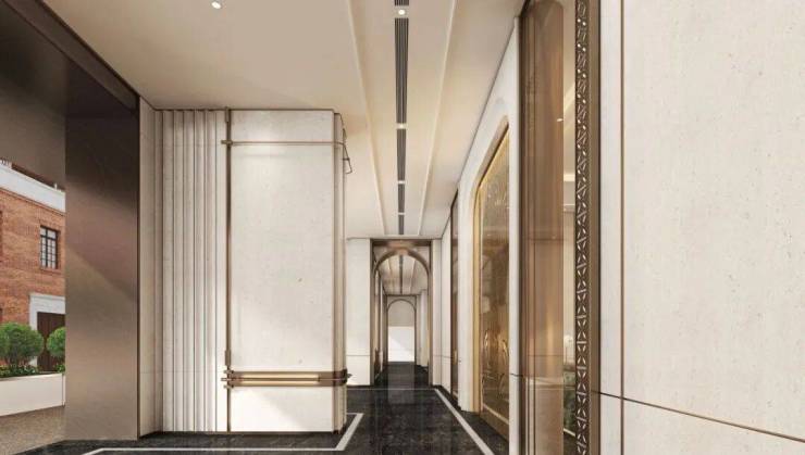 公区设计,巧妙融入百乐门印象、沪西电影院等文化元素,将过去记忆植入场景。嘉佩乐酒店式门庭、琉璃光廊式车库、海派人文哲思花园,以“深度酒店化”营造归家艺术之旅。