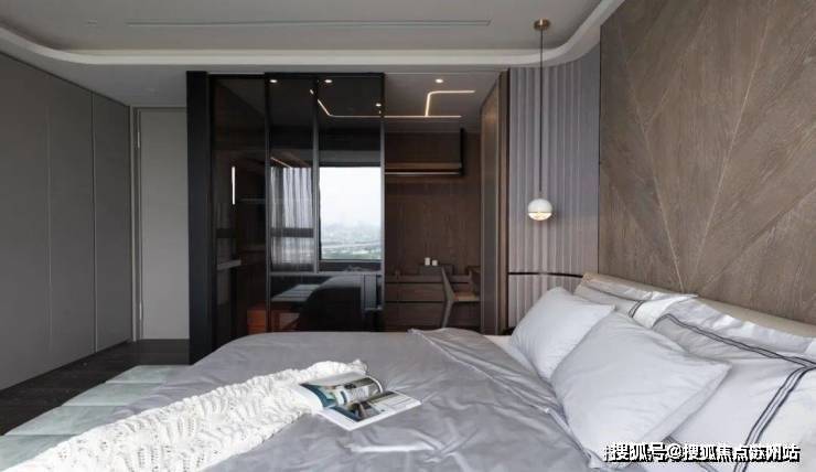 ▲卧室旁边的衣帽间以镜面玻璃推拉门为隔断,结合无主灯的设计,让小空间也显得更加优雅高级.