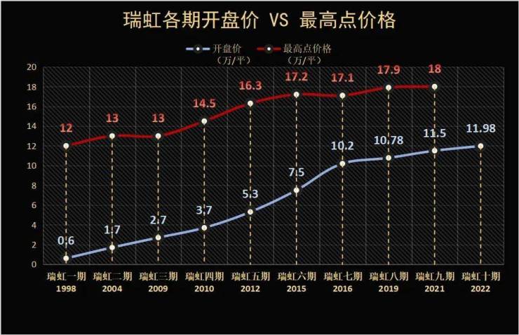 瑞虹新城板块价值兑现一直高于全市平均值,板块次新房挂牌价最高可达18万/㎡