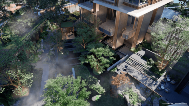 园林首创近7米垂直高差的“立体峡谷景观”,结合5-8.3米全架空层,形成14米高差的全龄剧场,将山川溪谷引入都市核心
