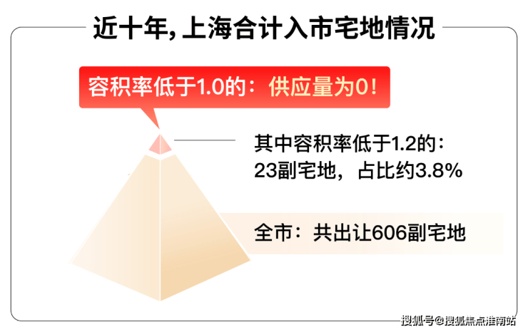 据统计,近十年上海土地市场共出让(含)宅地606块宅地,容积率低于1.2的共有23副宅地,占比不过约3.8%,且基本位于远郊区。