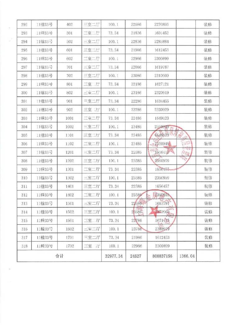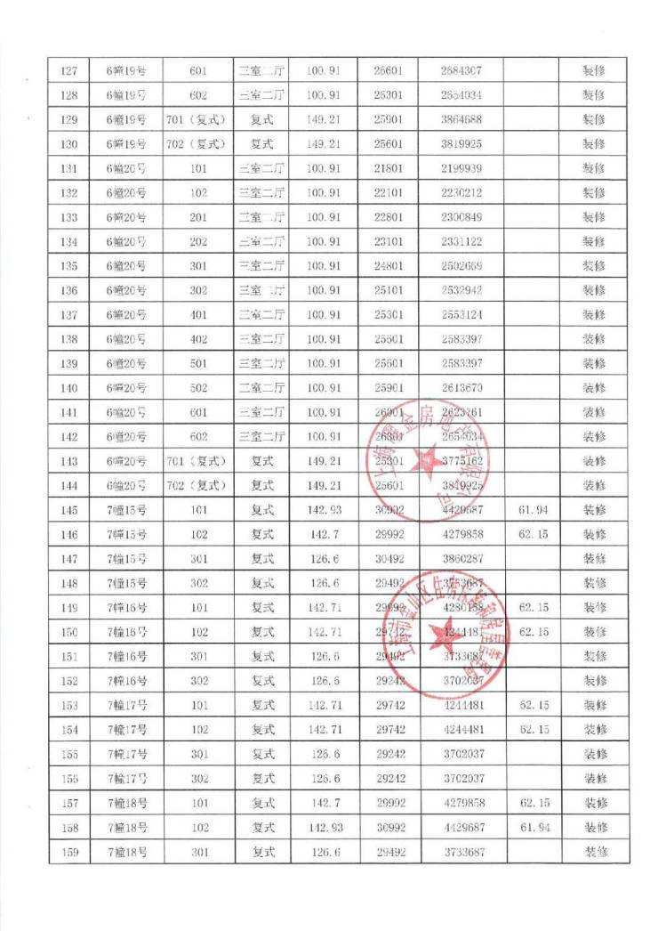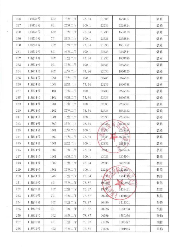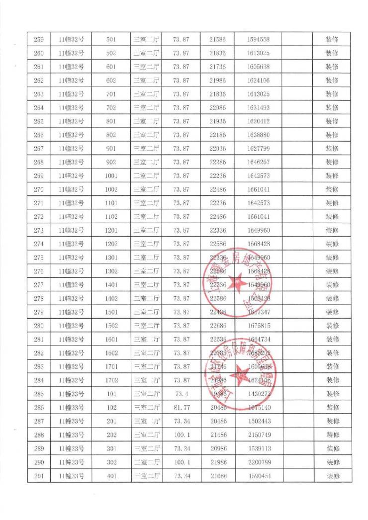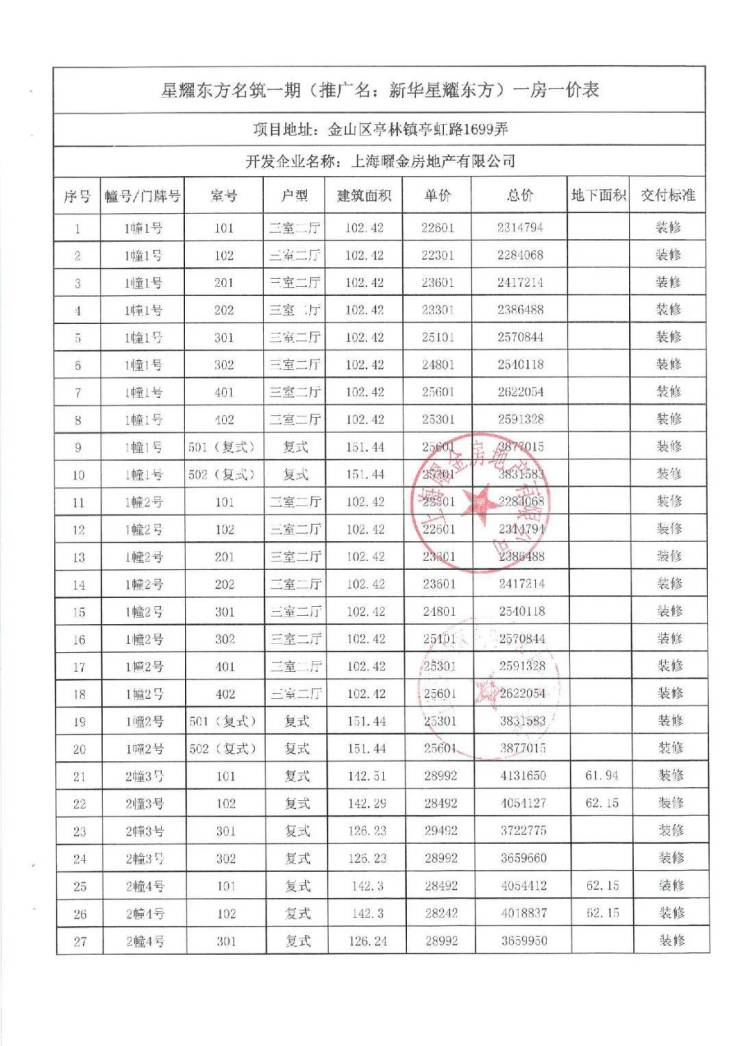 项目一房一价表